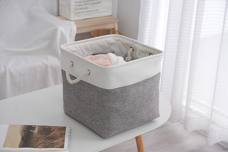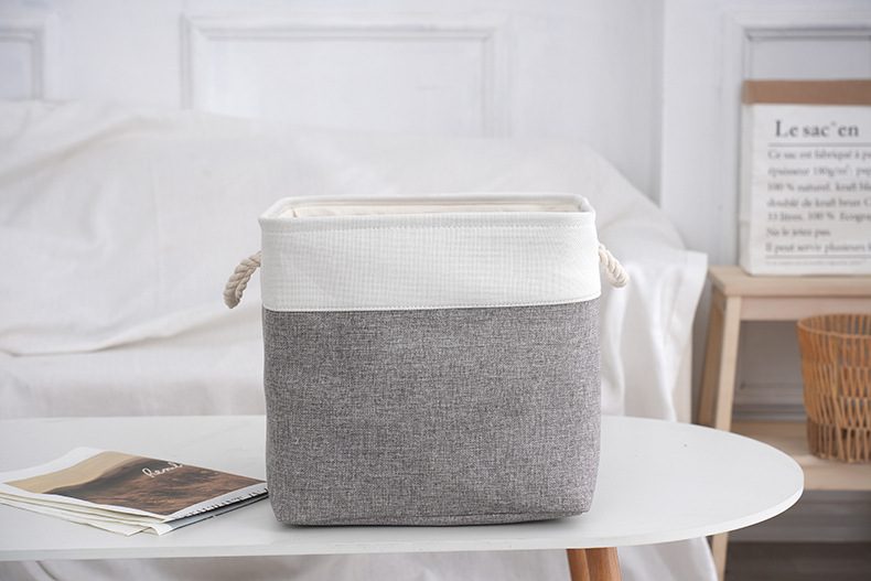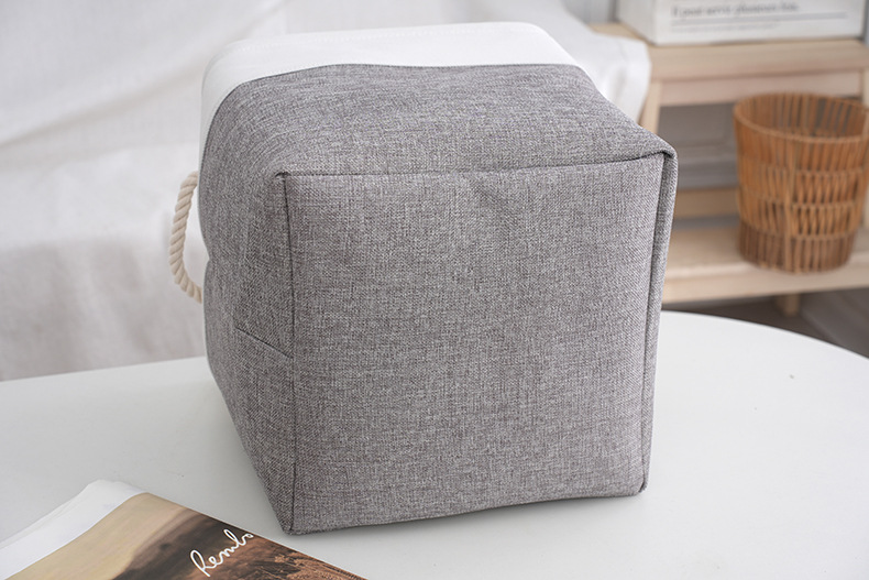 Nordic Patchwork Linen Organizer Basket Large Capacity Square Bedroom Living Room Clothing Organizer Basket